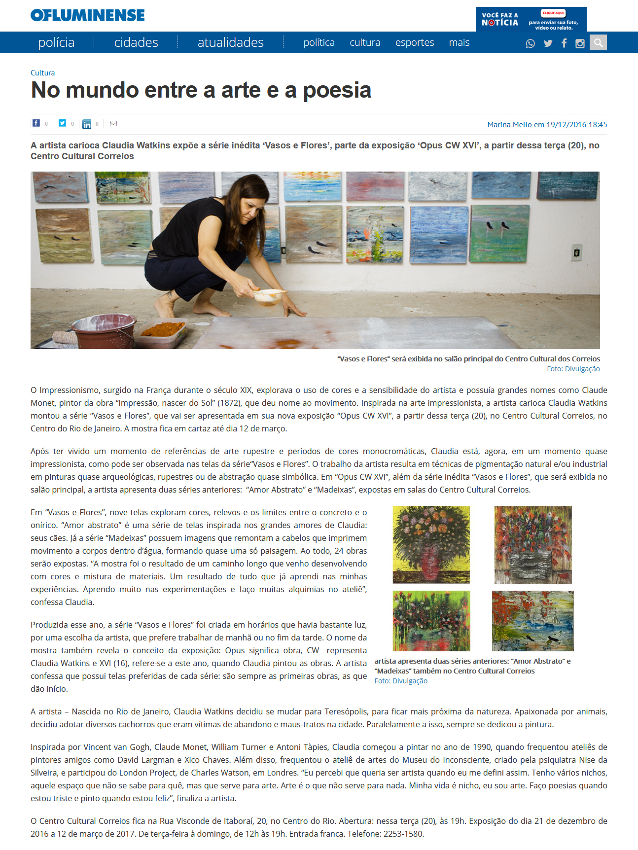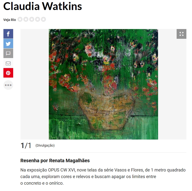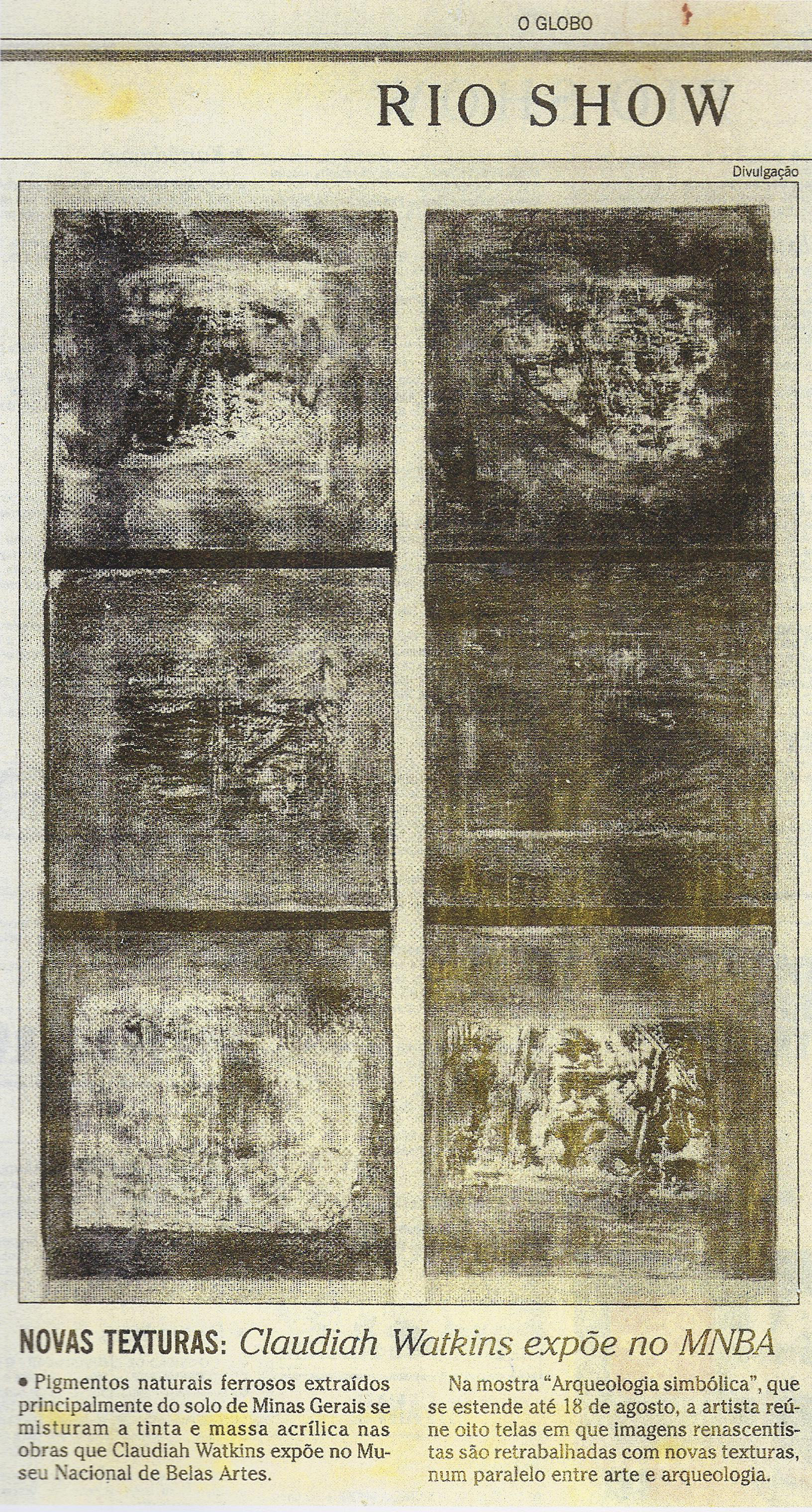 As pinturas de Claudia Watkins são campos de mineração, de garimpo nas "camadas geológicas" da alma. Camadas que reinventam e questionam o nosso planeta - e onde é possivel pesquisar os fósseis do passado e do futuro.